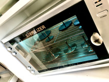 お客様に使用する物品をしっかりと殺菌消毒してります。
